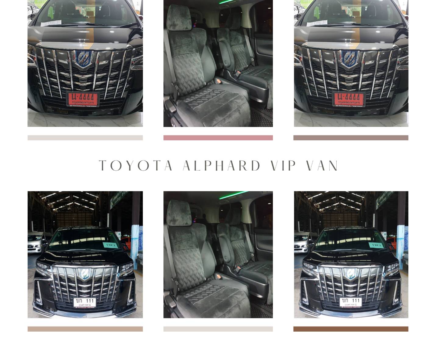 • แบบที่ 5 รถตู้ TOYOTA  ALPHARD VIP VAN TYPE สามารถนั่งได้ 5 ที่นั่ง  เบาะใหญ่ vip นุ่มสบาย สำหรับผู้บริหาร นักธุรกิจ ดารา นักแสดง  เลือกใช้บริการรุ่นนี้เป็นจำนวนมาก