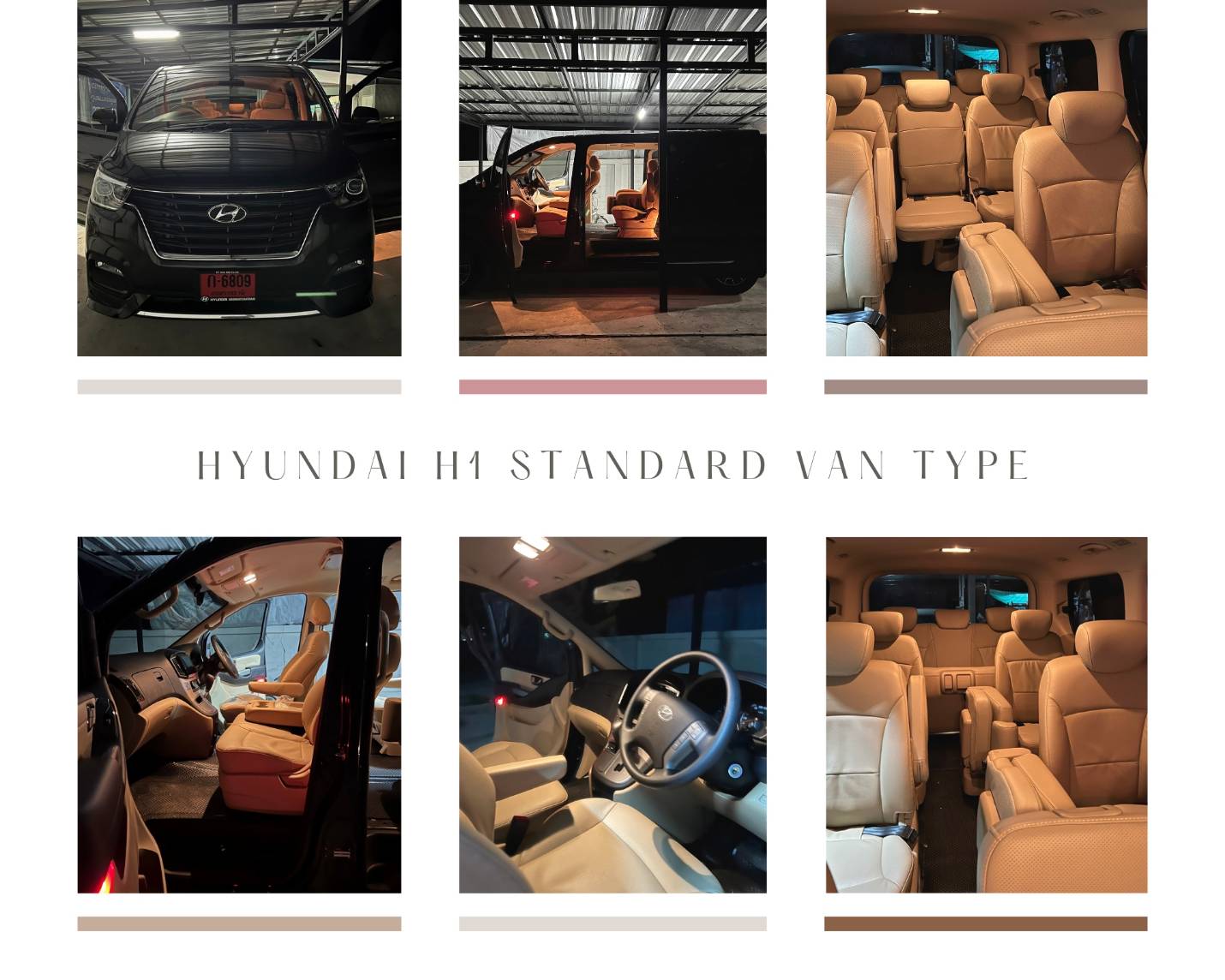 • แบบที่ 3 รถตู้vipให้เช่า รุ่น HYUNDAI H1 STANDARD VAN TYPE สามารถนั่งได้ 7-9 ที่นั่ง  เบาะใหญ่ vip นุ่มสบาย สำหรับนักท่องเที่ยวที่ต้องการความเป็นส่วนตัว นักธุรกิจ ดารา นักแสดง  เลือกใช้บริการรถตู้รุ่นนี้เป็นจำนวนมาก